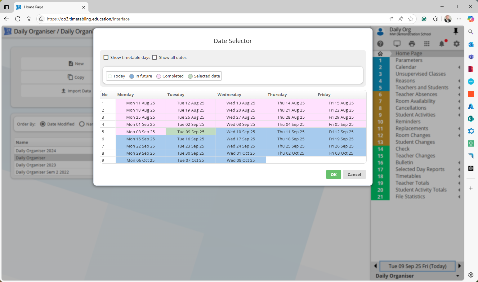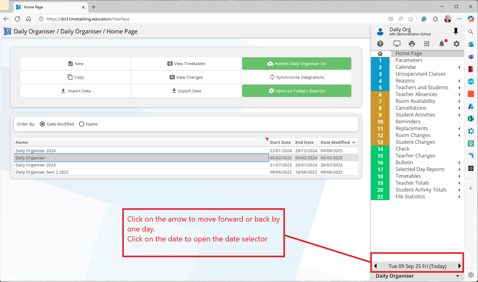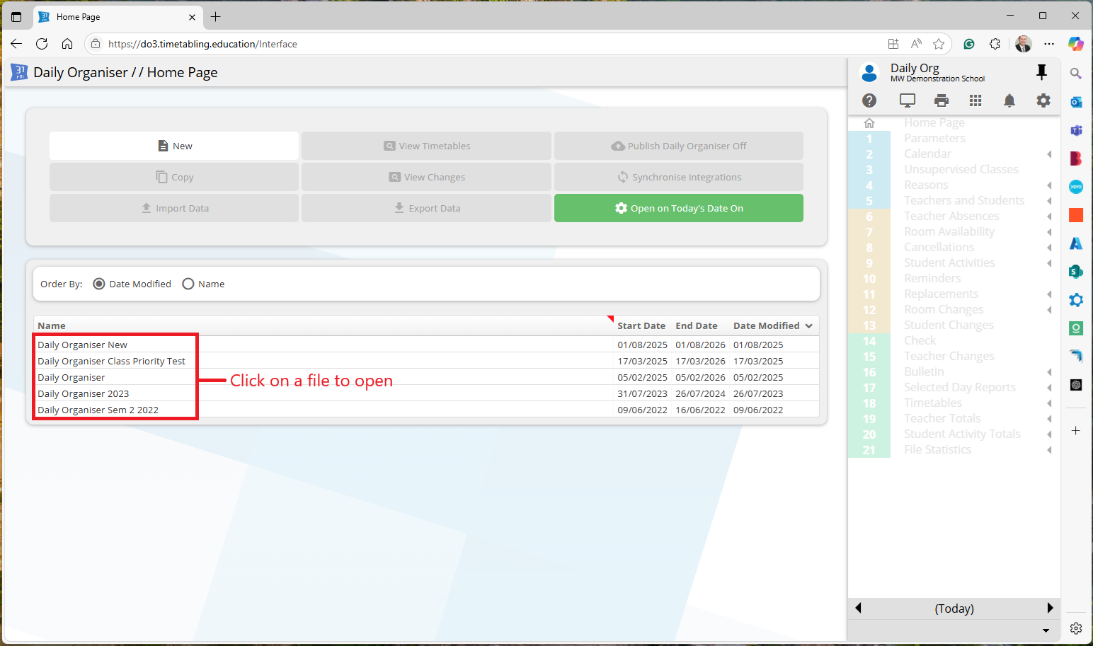 Note: if you have two users accessing the same Daily Organiser file at the same time, they will need to use the same version (either both use Modern or both use Classic).
