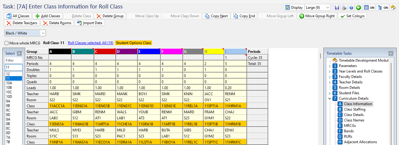 4. Go to screen [7A] Class Information and check/edit your class codes to match the Student Options data.